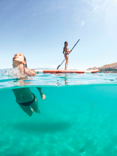 Nous installons donc une routine fort plaisante : location de transat à la journée (pour ne plus subir la torture des galets), jeux aquatique pour les filles, resto, glace, bière, milkshake, lecture, paddle, bouée tractée et parachute ascensionnel !